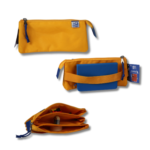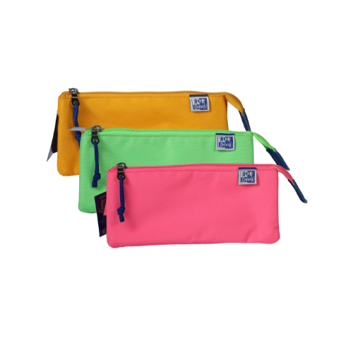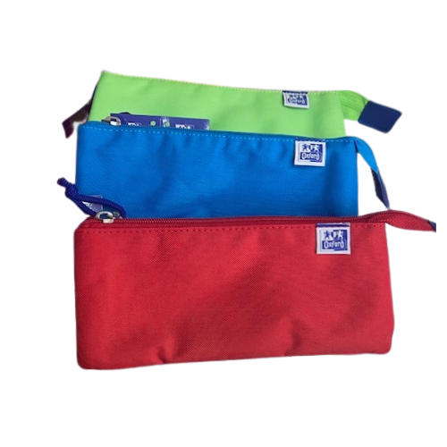 Fabricados em poliéster. Os estojos OXFORD KANGOO KIDS triplos são ideais para quem necessita de um estojo para organizar diferentes tipos de material como as canetas e lapis, marcadores e lápis de cor. O seu design confere estabilidade, mantendo o estojo de pé na secretária para um acesso mais fácil. O forro interior combina com a cor do estojo.